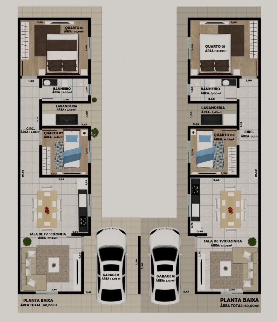 Edificação: 60,00 m2 (Laje) – Cada Unidade