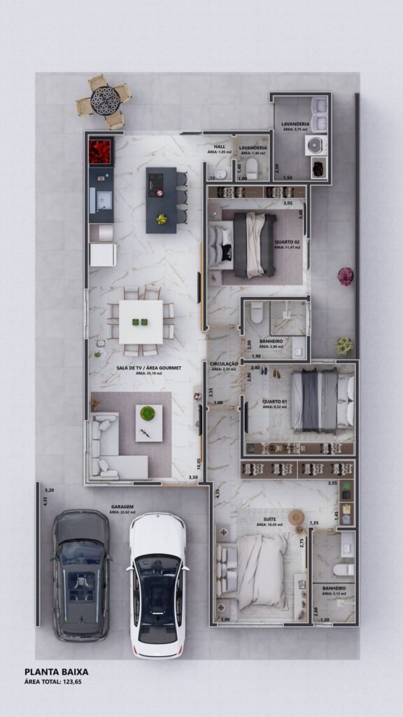 * Área gourmet (Sala de jantar / cozinha / área de churrasqueira)
